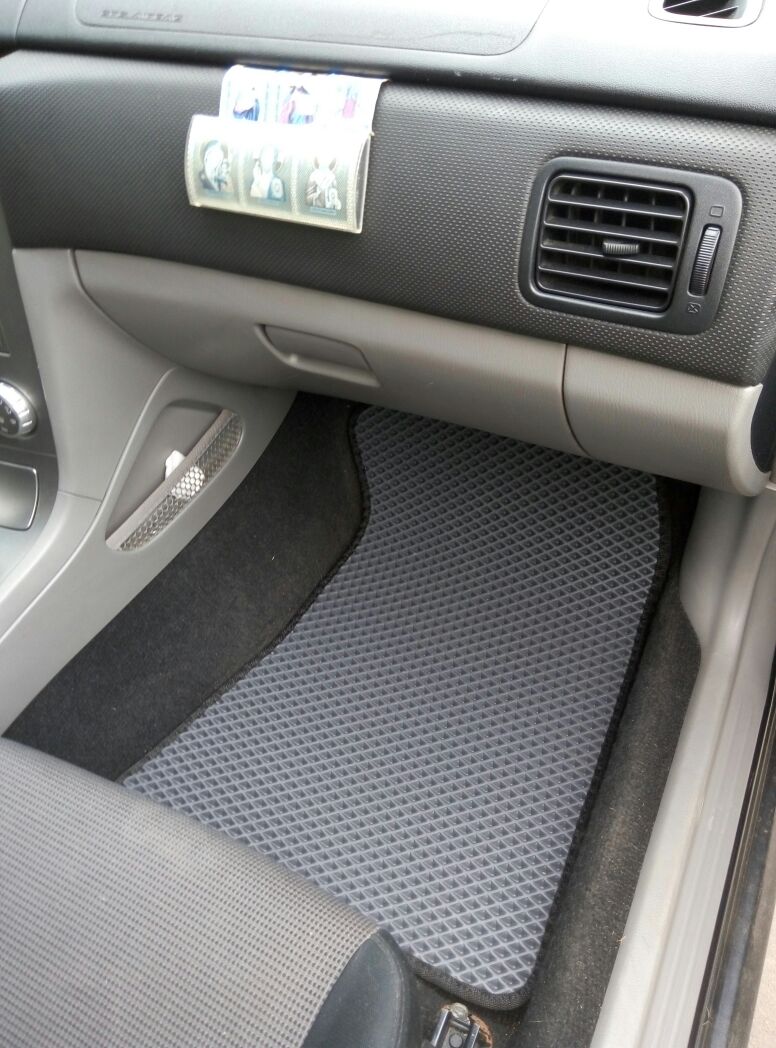 EVA коврики для автомобиля Subaru Forester II 2002 - 2008 — это лучший выбор. Покрытие из этого ячеистого полимерного материала покупают сотни автолюбителей. Коврики из ЭВА долговечные, прочные, красивые. Сроки службы изделий — от 5 лет. Они не выделяют вредных веществ, ничем не пахнут. Коврики защищают пол автомобиля от грязи и влаги, а салон — от лишней пыли.