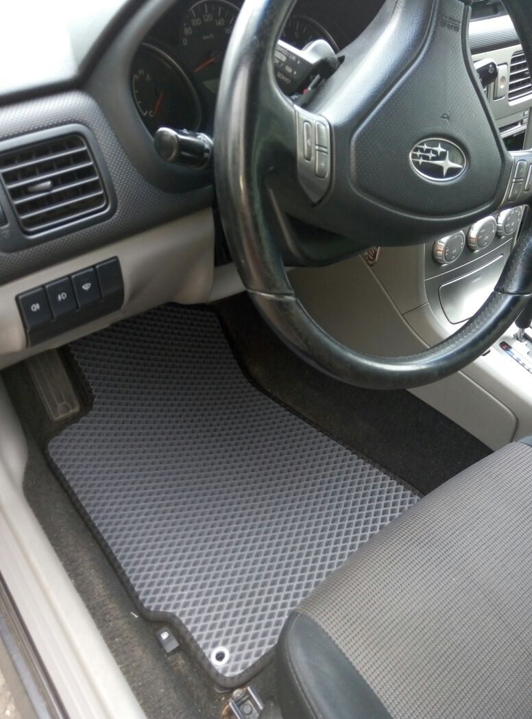 EVA коврики для автомобиля Subaru Forester II (правый руль) 2002 - 2008 — это лучший выбор. Покрытие из этого ячеистого полимерного материала покупают сотни автолюбителей. Коврики из ЭВА долговечные, прочные, красивые. Сроки службы изделий — от 5 лет. Они не выделяют вредных веществ, ничем не пахнут. Коврики защищают пол автомобиля от грязи и влаги, а салон — от лишней пыли.
