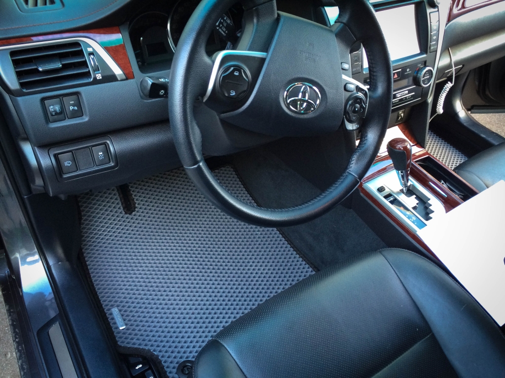 EVA коврики для автомобиля Toyota Camry VII (XV50) 2011 - 2018 — это лучший выбор. Покрытие из этого ячеистого полимерного материала покупают сотни автолюбителей. Коврики из ЭВА долговечные, прочные, красивые. Сроки службы изделий — от 5 лет. Они не выделяют вредных веществ, ничем не пахнут. Коврики защищают пол автомобиля от грязи и влаги, а салон — от лишней пыли.